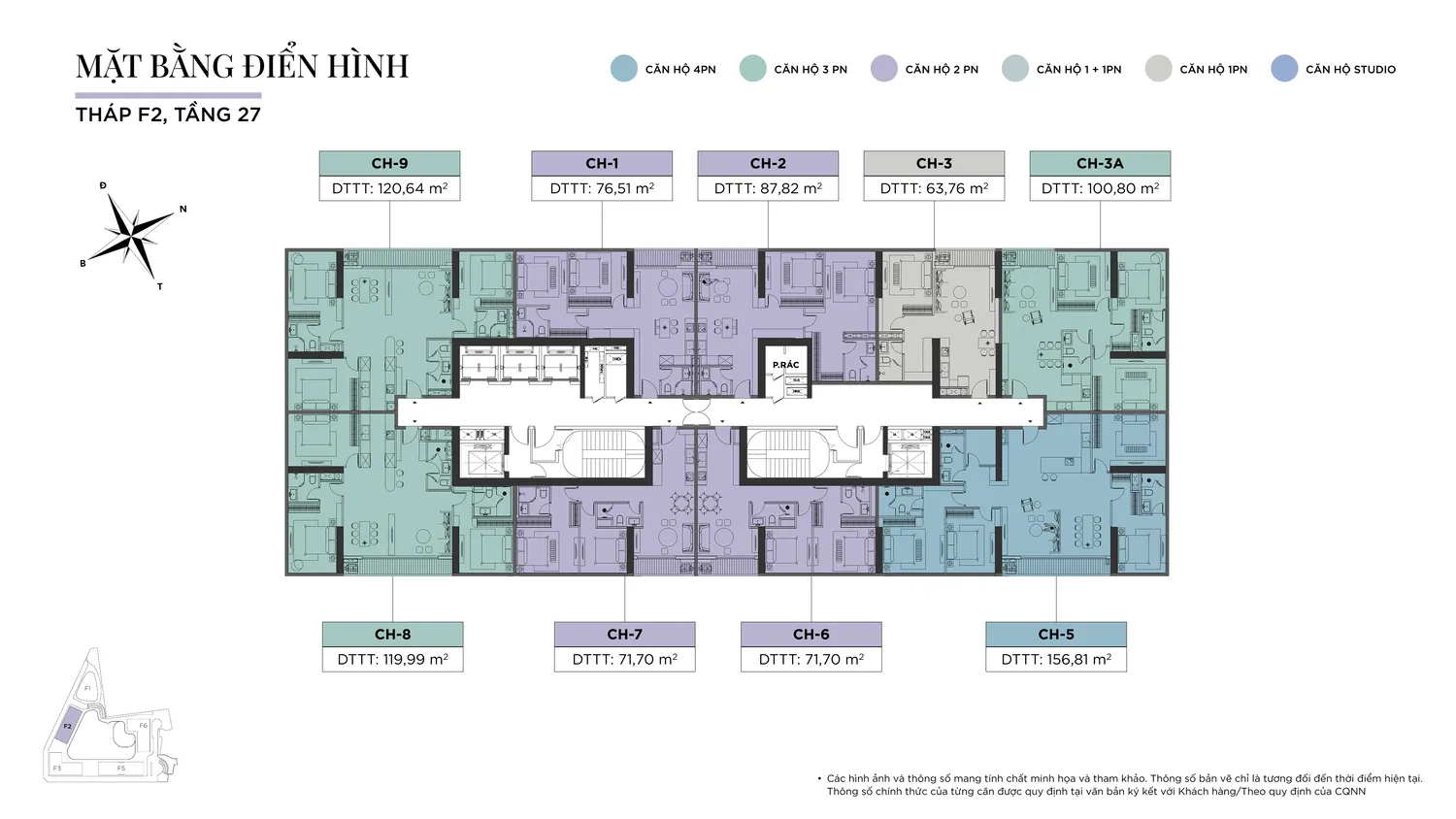 | 3PN | 3 căn (CH-3A, CH-8, CH-9) | 100,80 – 120,64 m² |
