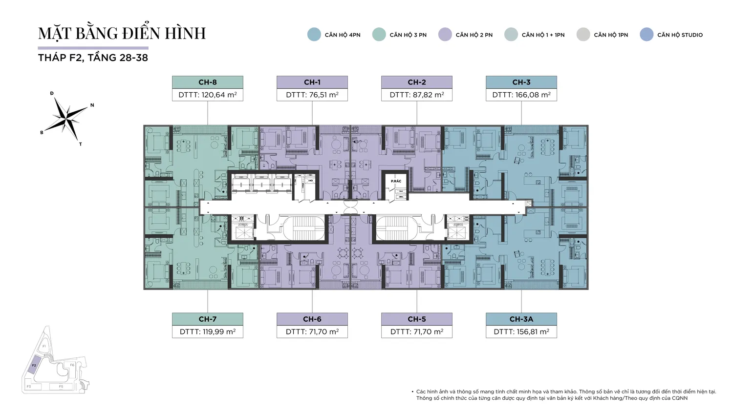 | 3PN | 2 căn (CH-7, CH-8) | 2 x 11 = 22 căn | ~120 m² |